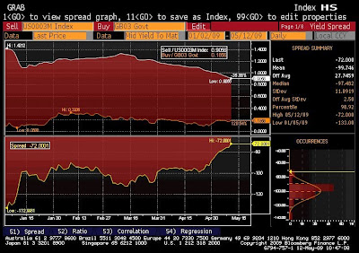 Apparently, banks don't see much risk in lending to each other. The spread between Libor (the rate at which banks lend to each other) and Treasuries (proxy for the risk free rate) falls below 1% for the first time in a while.