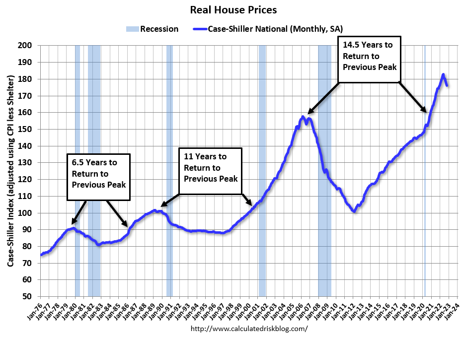 Curiously, the price series (below) is much more slowly moving than the Activity series. And for the last three pricing cycles since 1968, it appears that the cycles are lengthening.